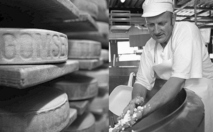 In Goms arbeiten 11 Bergbauern, die in alter, kleinbäuerlicher Familientradition ihre landwirtschaftlichen Betriebe führen und Milch nach den strengen Richtlinien von Bio Suisse produzieren. Vor mehr als 18 Jahren haben sie die Genossenschaft zur Milchverarbeitung, die "Bio Bergkäserei Goms" gegründet. 230 Kühe liefern die Milch für die Bio-Bergkäserei. Im Goms finden die Kühe alles, was sie für gute Milch brauchen: sonnenverwöhntes Klima, kristallklare Bergluft, Gletscherwasser und saftige, blühende Weiden. Würzige Milch von Tieren, die sich in ihrer Haut wohl fühlen: Das sind die natürlichen Grundlagen für die Rohmilch-Produkte, die in der Bio-Bergkäserei hergestellt werden.